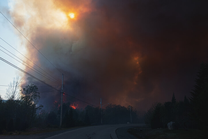 Smoke can quickly change direction and density. It’s best to avoid these areas altogether, if possible. Consider taking a different route to your destination – one that completely avoids the affected area.